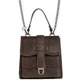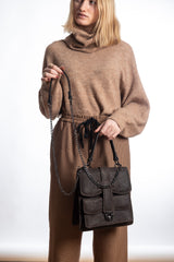 - Schulterriemen: kurzer Lederriemen; auch als Crossbody-Bag tragbar mit Goldkette und Leder am Schulterteil