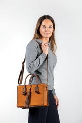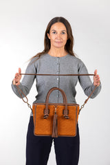 Unsere Handtasche PALERMO steht für klassischen Chic und flexible Nutzbarkeit. Die Tasche wurde aus hochwertigstem Leinen von Ambiente Design und Rindsleder per Hand von unseren Produktionspartnern in Bosnien gefertigt. Die Tasche ist in zwei Größen erhältlich und als Handtasche oder Umhängetasche tragbar. Die Tasche im klassischen Design ist sowohl tagsüber als auch abends ein flexibles Accessoire.