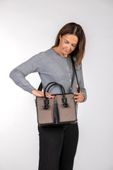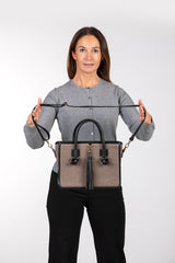 Unsere Handtasche PALERMO steht für klassischen Chic und flexible Nutzbarkeit. Die Tasche wurde aus hochwertigstem Leinen von Ambiente Design und Rindsleder per Hand von unseren Produktionspartnern in Bosnien gefertigt. Die Tasche ist in zwei Größen erhältlich und als Handtasche oder Umhängetasche tragbar. Die Tasche im klassischen Design ist sowohl tagsüber als auch abends ein flexibles Accessoire.