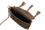 Unsere Burma Clutch ist eine zeitlose Kuverttasche mit Quasten. Die Quasten geben der klassischen Form einen verspielten Look. Untertags kann man die Tasche mit dem Schulterriemen casual als Cross-Body-Bag tragen, als Clutch ist sie abends der perfekte Begleiter und gibt jedem Look ein perfektes Finish.
