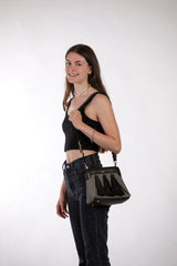 Die Ledertasche ist sowohl als Umhängetasche tagsüber als auch chic für den Abend einsetzbar und somit der perfekte Begleiter für jeden Anlass.