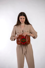 Clutch / Umhängetasche / Kulturbeutel - Cognac Brown/Kelim