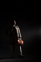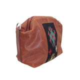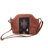 Clutch / Umhängetasche / Kulturbeutel - Cognac Brown/Kelim Black