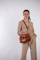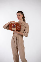 Clutch / Umhängetasche / Kulturbeutel - Cognac Brown/Kelim Hell