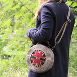 Die Marrakech Tasche ist eine Cross Body Bag mit einem einzigartigen Style. Die runde Form und die kleinen Details machen aus der Umhängetasche das perfekte Accessoire für all jene, die gerne auffällige Stücke tragen. Der Schulterriemen ist mit Karabinern befestigt. Wenn man sie abnimmt, kann man die Tasche auch als Clutch tragen.