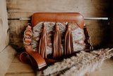 Für unsere Clutch und Crossbody-Bag SOUK haben wir uns von den Mustern und Farben im Souk von Marrakesch inspirieren lassen. Die Ledertasche mit Kelim und Quasten ist sowohl als Umhängetasche tagsüber als auch casual-chic für den Abend einsetzbar und somit der perfekte Begleiter für jeden Anlass. Mit der Kombination aus Leder und Kelim-Muster unterstreicht sie einen coolen Look.