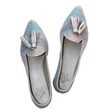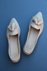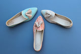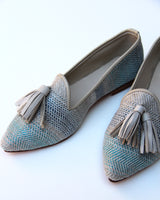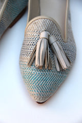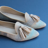 Spaziergänge durch französische kleine Gassen waren die Inspiration für unsere Loafers namens TOULOUSE. Für die Produktion der Schuhe haben wir hochqualitative Baumwollstoffe unserer Kooperationspartner von Ambiente Design nach Marokko geschickt. Dort wurden die Stoffe von einem Artisan im Souk Marrakeschs per Hand zu einer neuen, eleganten Version unserer heiß geliebten Babouche Loafers gefertigt. Das Innenleben und die Quasten der Loafers sind aus Glattleder.